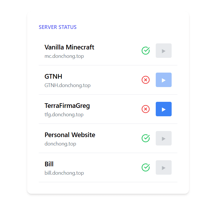 A simple monitor site for my personal website and other services. Along with the Minecraft server starting function.