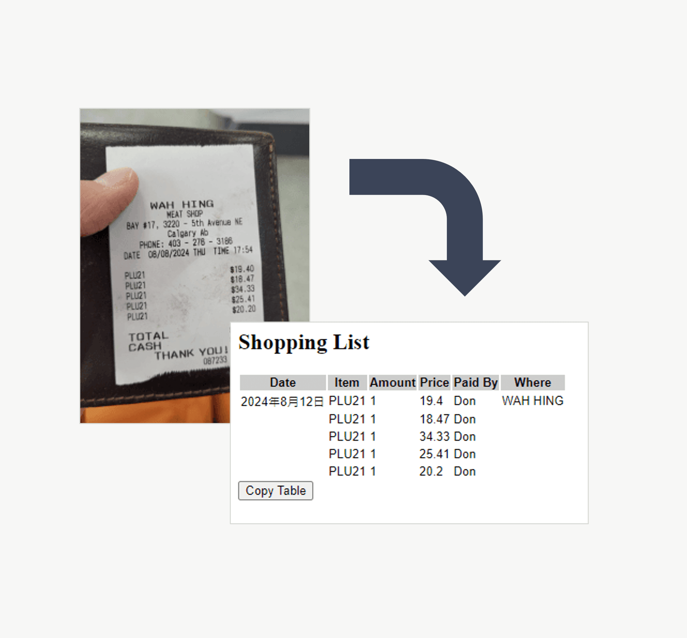 A reliable receipt extractor converts a receipt picture into a spreadsheet table. This helped us with our bookkeeping for over a year, anywhere, anytime.